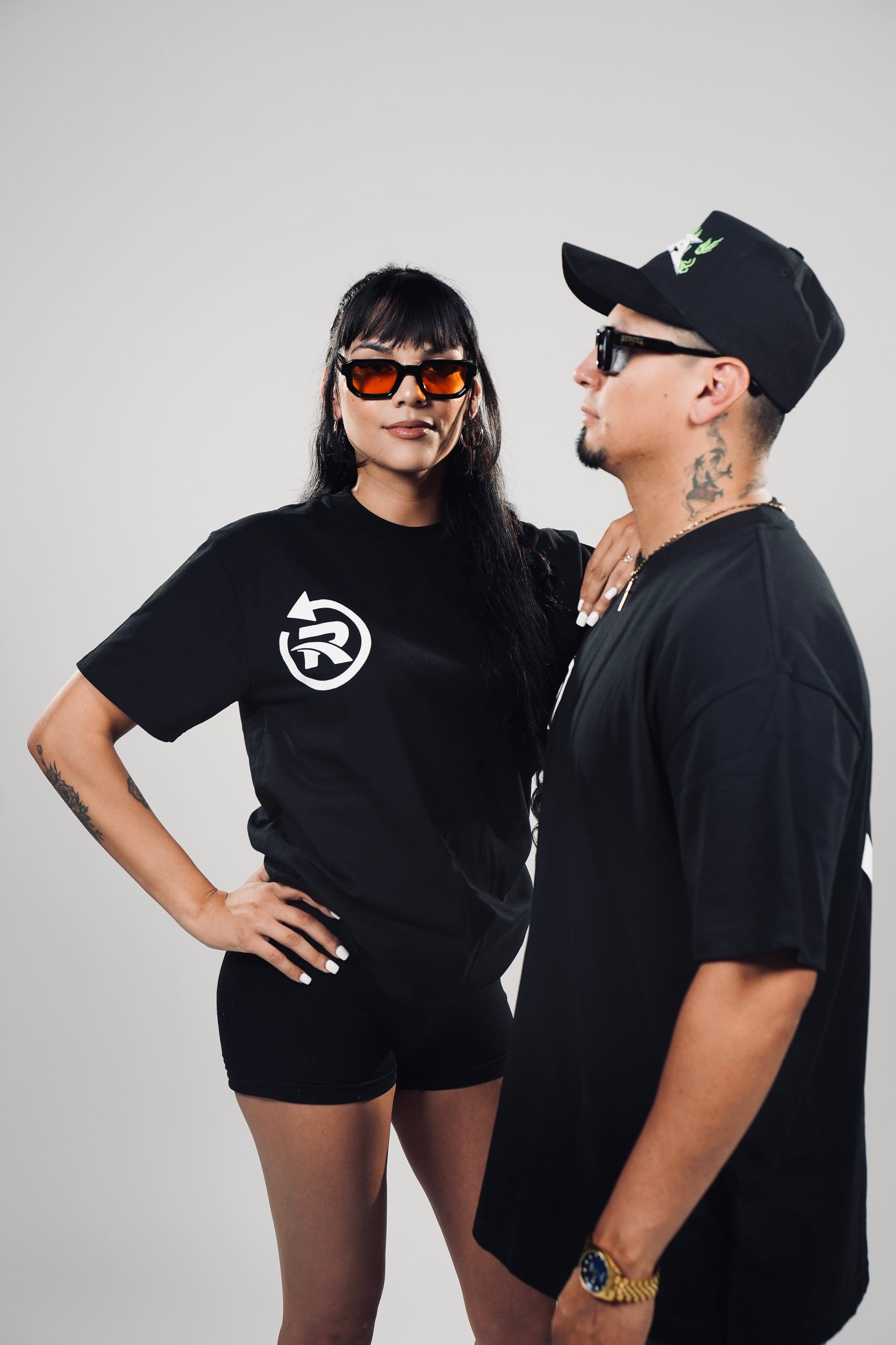 Black unisex tee with Reborn LA logo on the front and “Move With a Purpose” screen-printed graphic on the back. 100% cotton, relaxed streetwear fit.